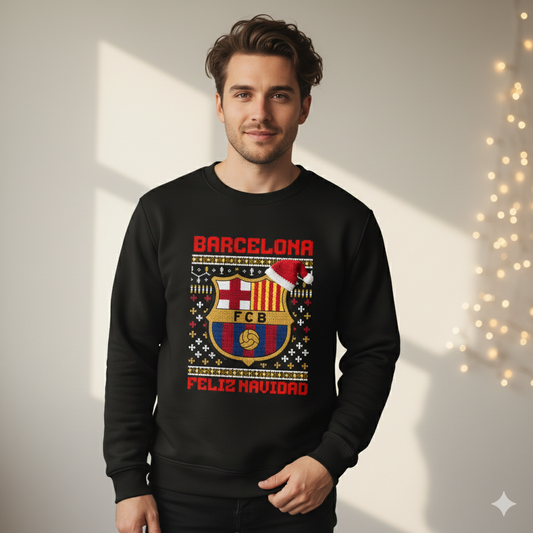 Suéter navideño Ugly Sweater FC Barcelona Estilo Crochet Edición Especial