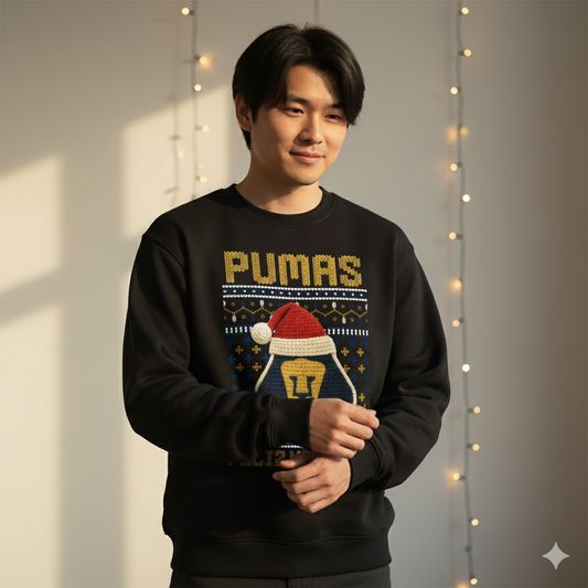 Suéter navideño Ugly Sweater Pumas Estilo Crochet Edición Especial