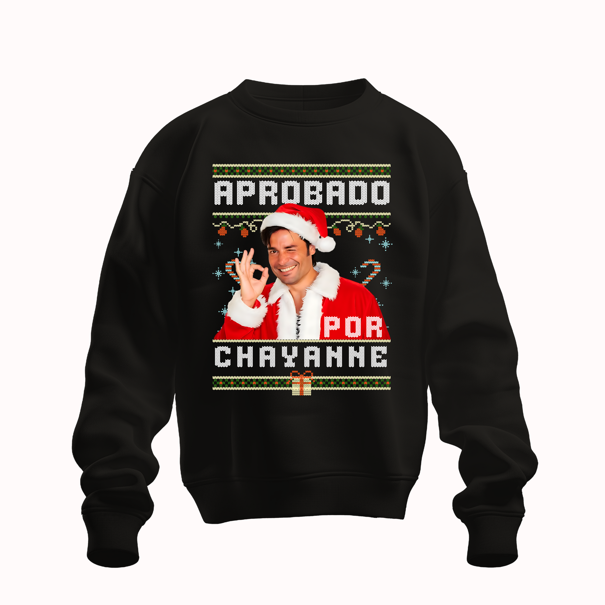 Este Ugly Sweater de Chayanne combina un diseño festivo tipo tejido con una imagen navideña divertida y carismática del ídolo. Suéter cómodo, calientito y perfecto para fans, posadas e intercambios.